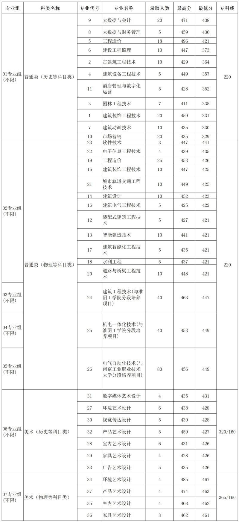 我校2023年江苏省高考各专业录取分数