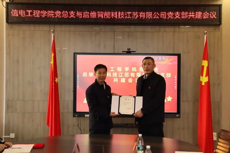 2024年10月10日,我院院长吴兆立当选泉山区数字经济产业链综合党委委员。12月5日,我院党总支被泉山区数字经济产业链综合党委授予“泉山区数字人才实训基地”,我院副院长王昕被聘为“数字经济咨询专家库首批专家”。12月11日,我院党总支与产业链上企业——启维智能科技江苏有限公司党支部举行共建活动,双方就如何以“党建链”赋能“产业链”高质量发展,落地落实“三张清单”等共建问题进行了深入地探讨并签署了《校企党支部党建共建协议》,启维智能科技江苏有限公司董事长王志胜被聘为信电工程学院学生“就业导师”。