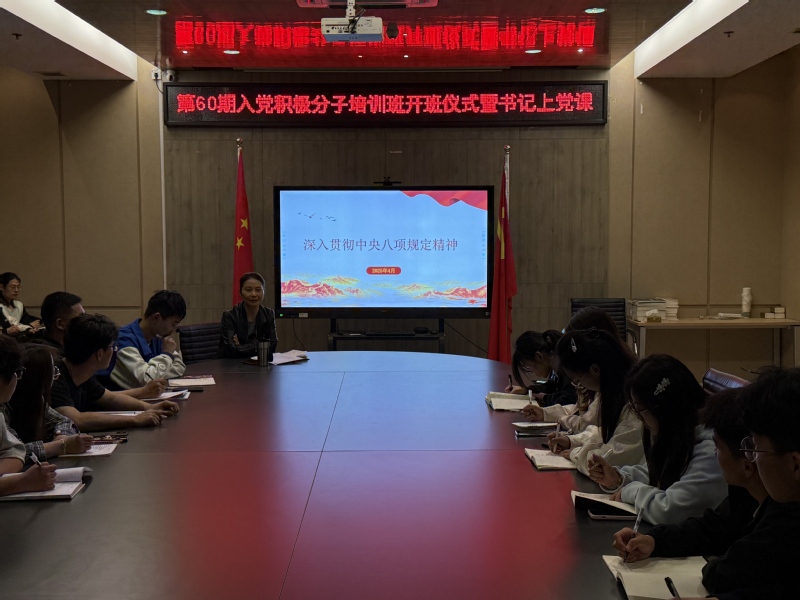 开班仪式结束后,虞莉书记以《深入贯彻中央八项规定精神》为主题,为入党积极分子讲授专题党课。虞莉书记强调,加强对中央八项规定精神等重要内容的学习,是青年学生坚定理想信念、保持政治本色的必然要求。虞莉书记鼓励学生们要切实发挥先锋模范作用,在专业学习中率先垂范,着力提升综合素质。