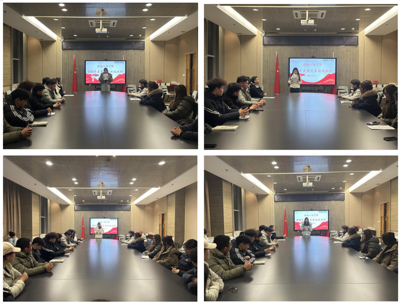 为深入贯彻落实上级团组织关于加强基层团组织建设的部署要求,全面检验基层团支书履职尽责情况,夯实共青团工作基础,激发组织活力,我院于近期组织开展了2025年度基层团支部书记“双述双评”工作。院团委高度重视此项工作,提前制定了详尽的实施方案,明确了“双述双评”的指导思想、评议内容、方法步骤和工作要求。并于12月18日,在学院会议室开展学院层面2025年度基层团支书双述双评工作。参加会议的有院团委书记郭崇嵩、团委副书记洪国轩、全体团支书以及学生代表。